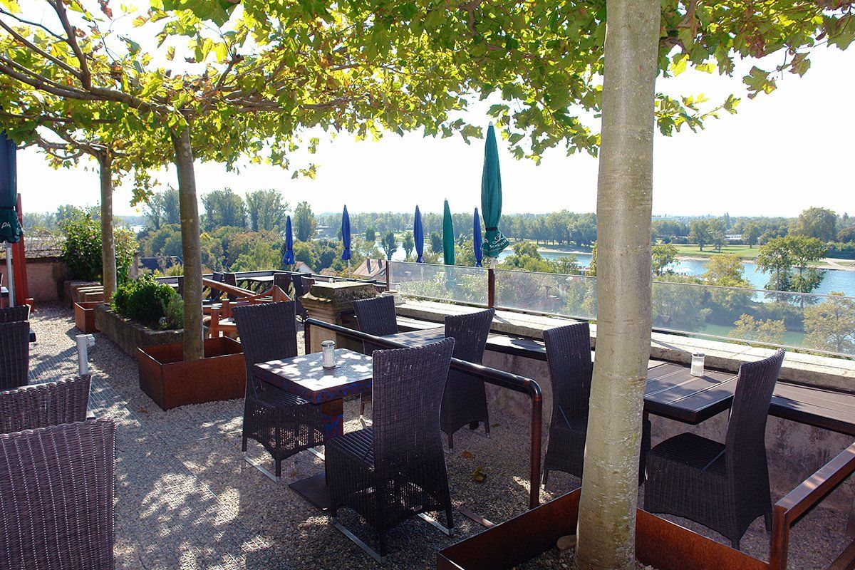 Der Blick über den Rhein weit ins Elsass hinein und in Richtung Vogesen